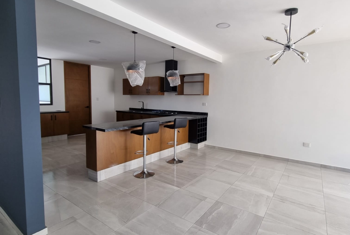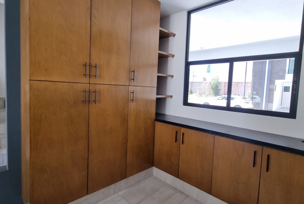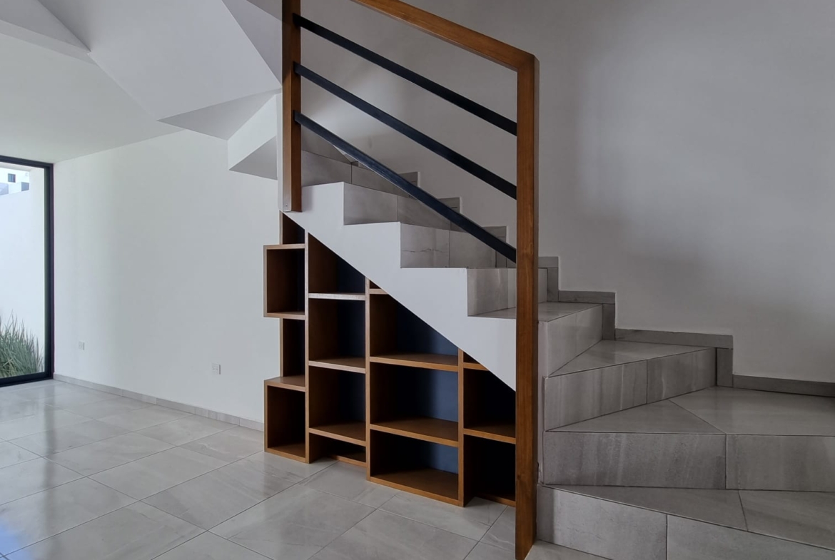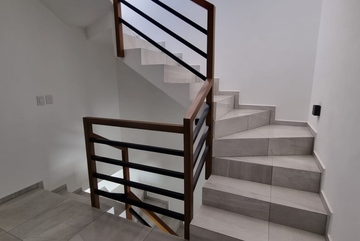 Planta Baja: Cochera, 1/2 Baño, Bodega, Cocina, Sala, Comedor, Jardín. Primer Nivel: Baño Completo, 2 Recámaras Secundarias, Recámara Principal con Vestidor y Baño Completo, Sala de TV. Roof: Roof con tarja, Salón Múltiple, Área de Lavado.