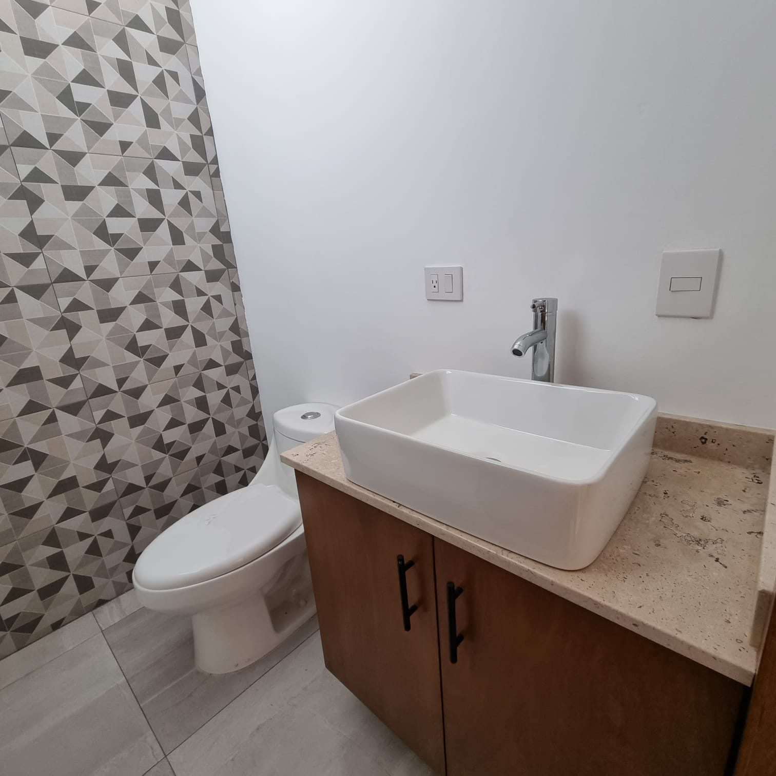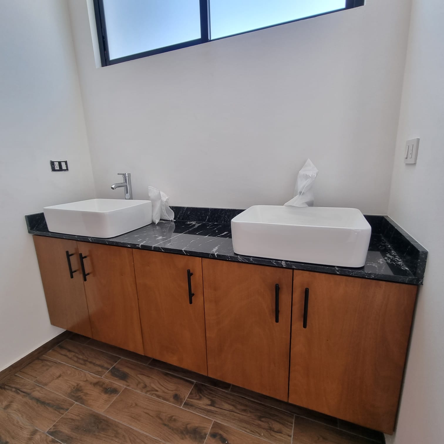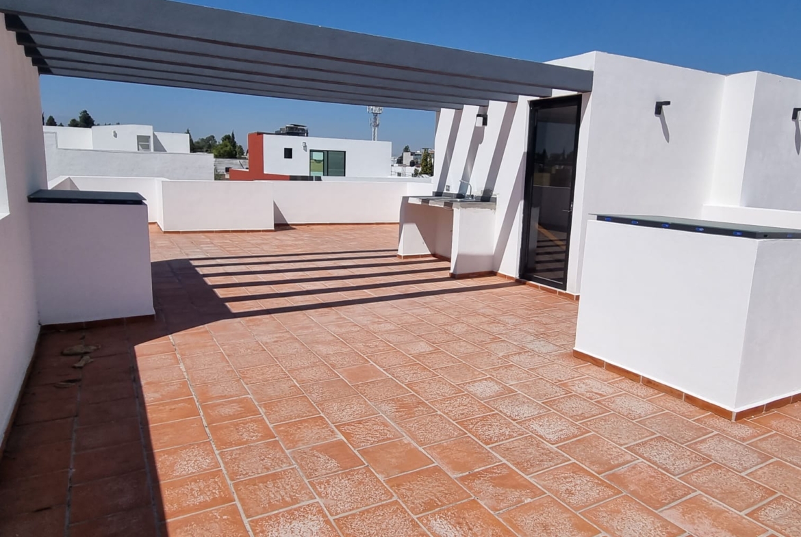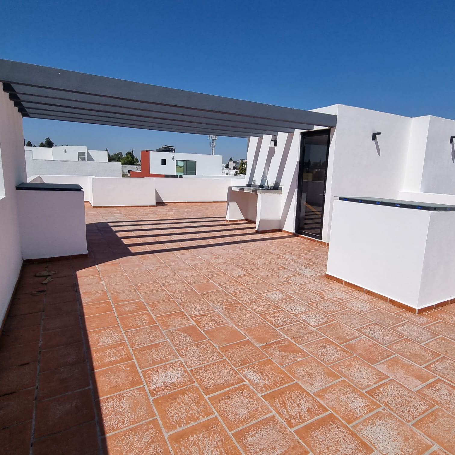 Planta Baja: Cochera para 2 autos, 1/2 Baño, Bodega, Cocina, Sala, Comedor, Jardín. Primer Nivel: Baño Completo, 2 Recámaras Secundarias, Recámara Principal con Vestidor y Baño Completo, Sala de TV. Roof: Roof con tarja, Salón Múltiple, Área de Lavado.