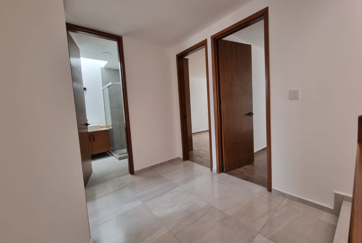Cochera para 2 autos, Recamara principal con vestidor, 2 secundarias con clóset 2 baños completos ½ baño, Roof Garden, Cuarto de Lavado, Sala de TV.