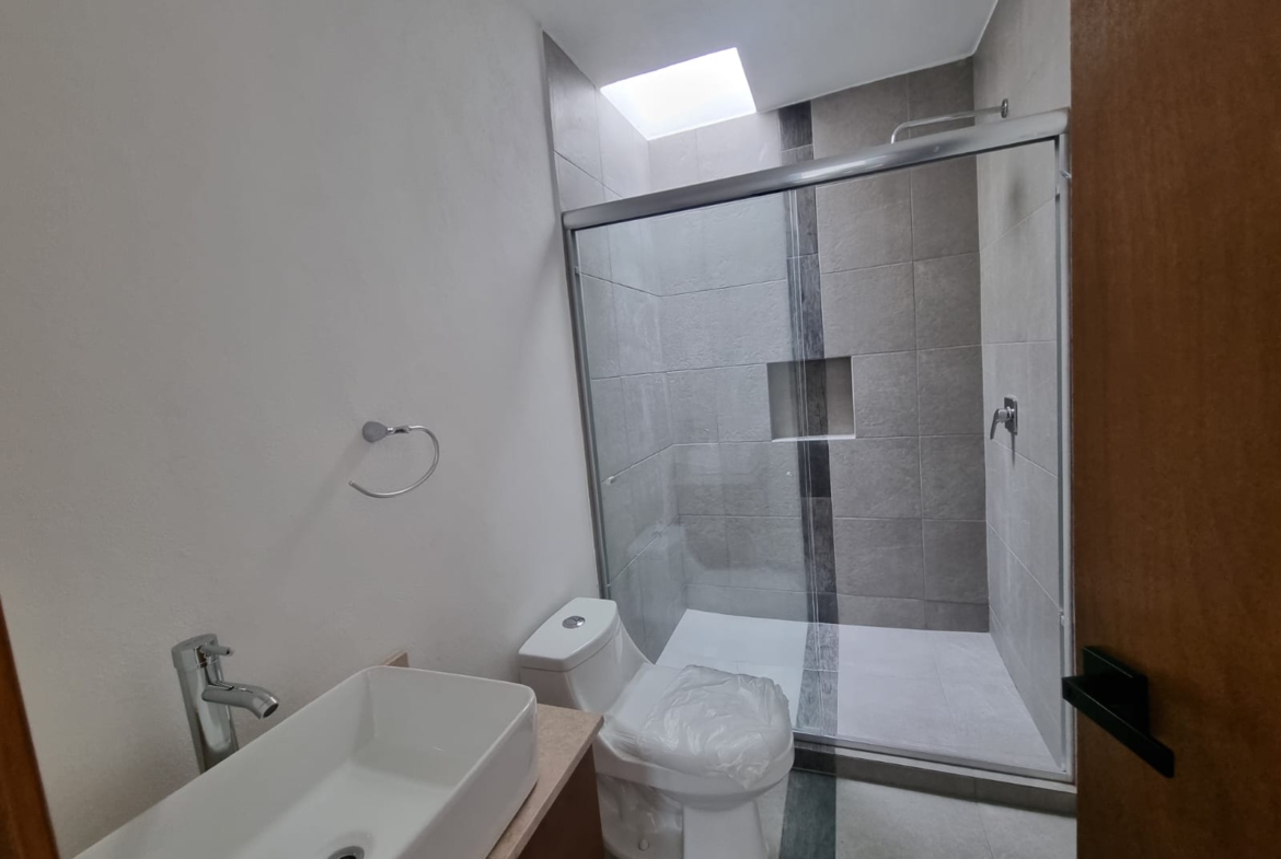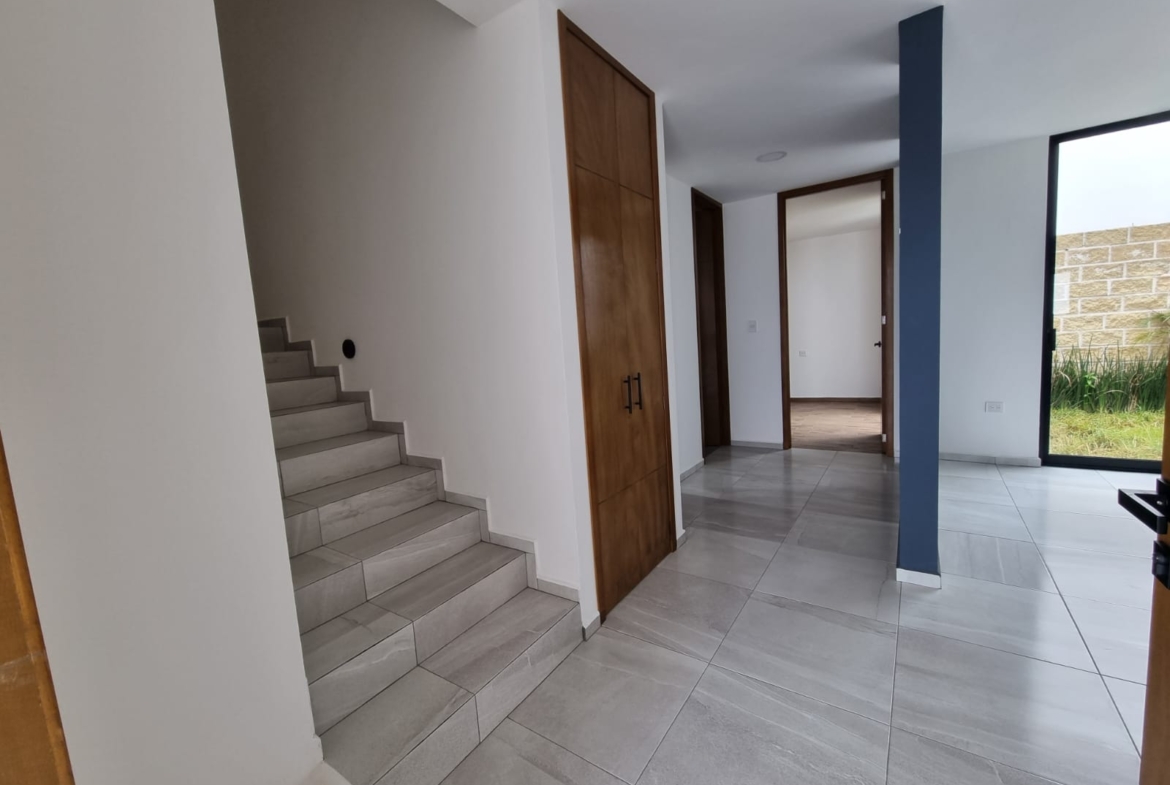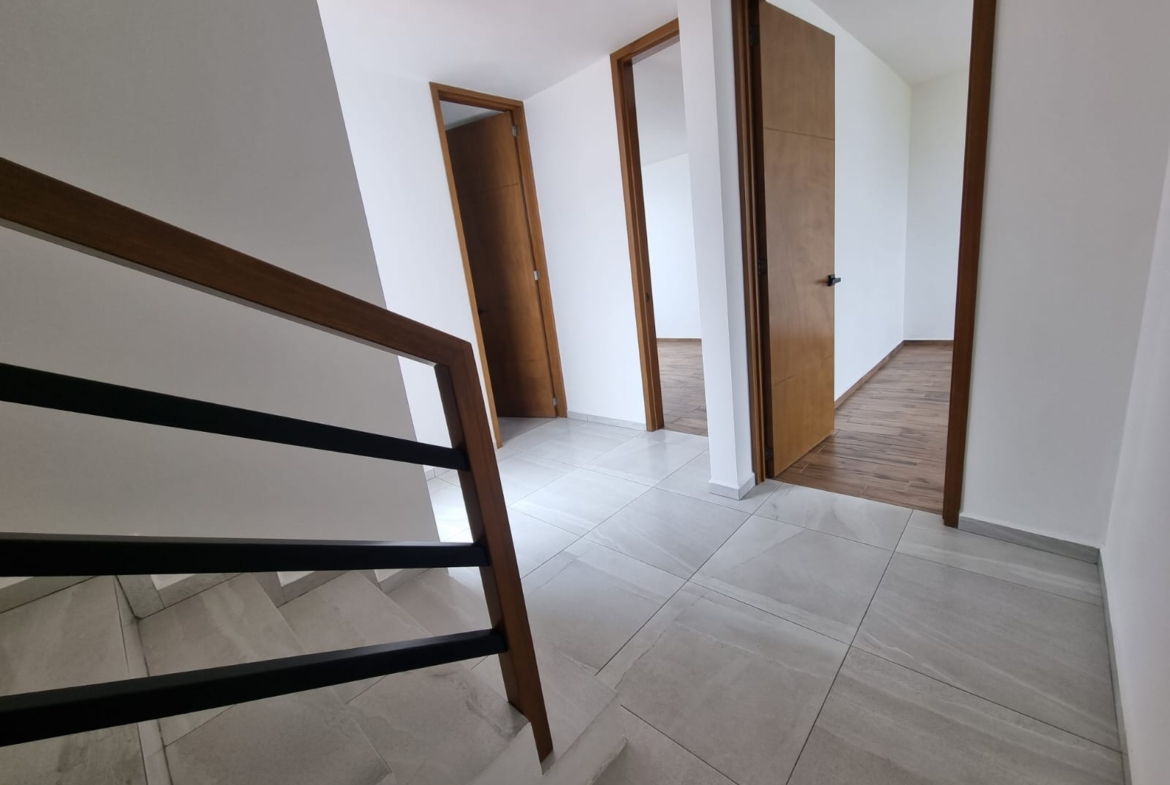 Planta Baja: Cochera, 1/2 Baño, Bodega, Cocina, Sala, Comedor, Jardín. Primer Nivel: Baño Completo, 2 Recámaras Secundarias, Recámara Principal con Vestidor y Baño Completo, Sala de TV. Roof: Roof con tarja, Salón Múltiple, Área de Lavado.