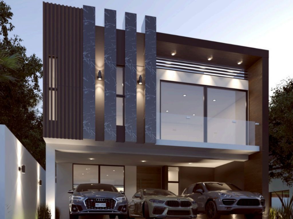 Primera Planta: Recámara principal con balcón, vestidor amplio, y baño completo con doble lavamanos. 2 recamaras secundarias amplias, c/u con baño completo y sala de TV.