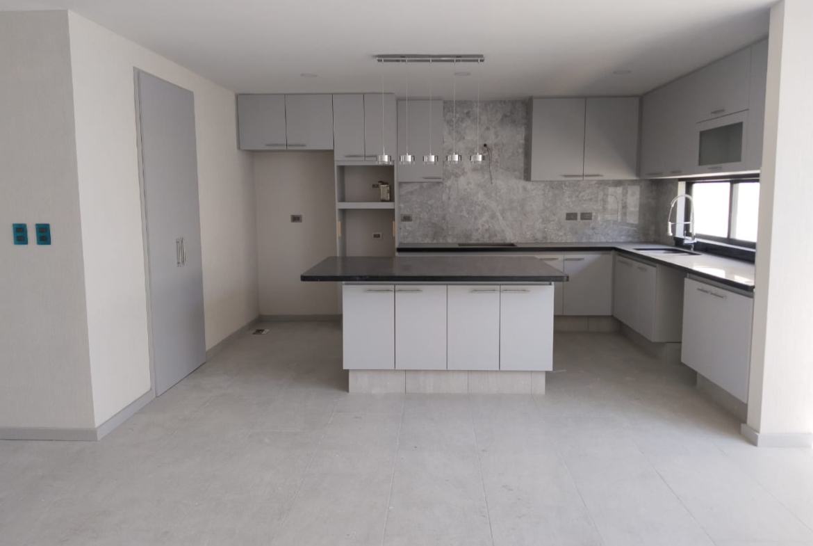 Planta Baja: Cochera para 2 autos semitechada, Bodega, Sala comedor, 1/2 baño, cisterna 10 mil litros, Cocina abierta totalmente equipada con torre de hornos, lavavajillas , alacena y jardín.